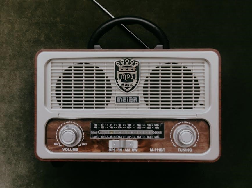 To use the FM radio on your SanDisk MP3 player‚ navigate to the “Radio” option in the main menu. Ensure your headphones are connected‚ as they act as the antenna. Select “Auto Scan” to search for available stations. Weak signals can be improved by adjusting the headphone position. Save favorite stations using the “Preset” feature for quick access. Use the forward and backward buttons to change stations or manually tune using the directional buttons. Adjust the volume with the volume controls. Note that the FM radio feature may not be available in all regions or models. Refer to your specific model’s manual for exact instructions.